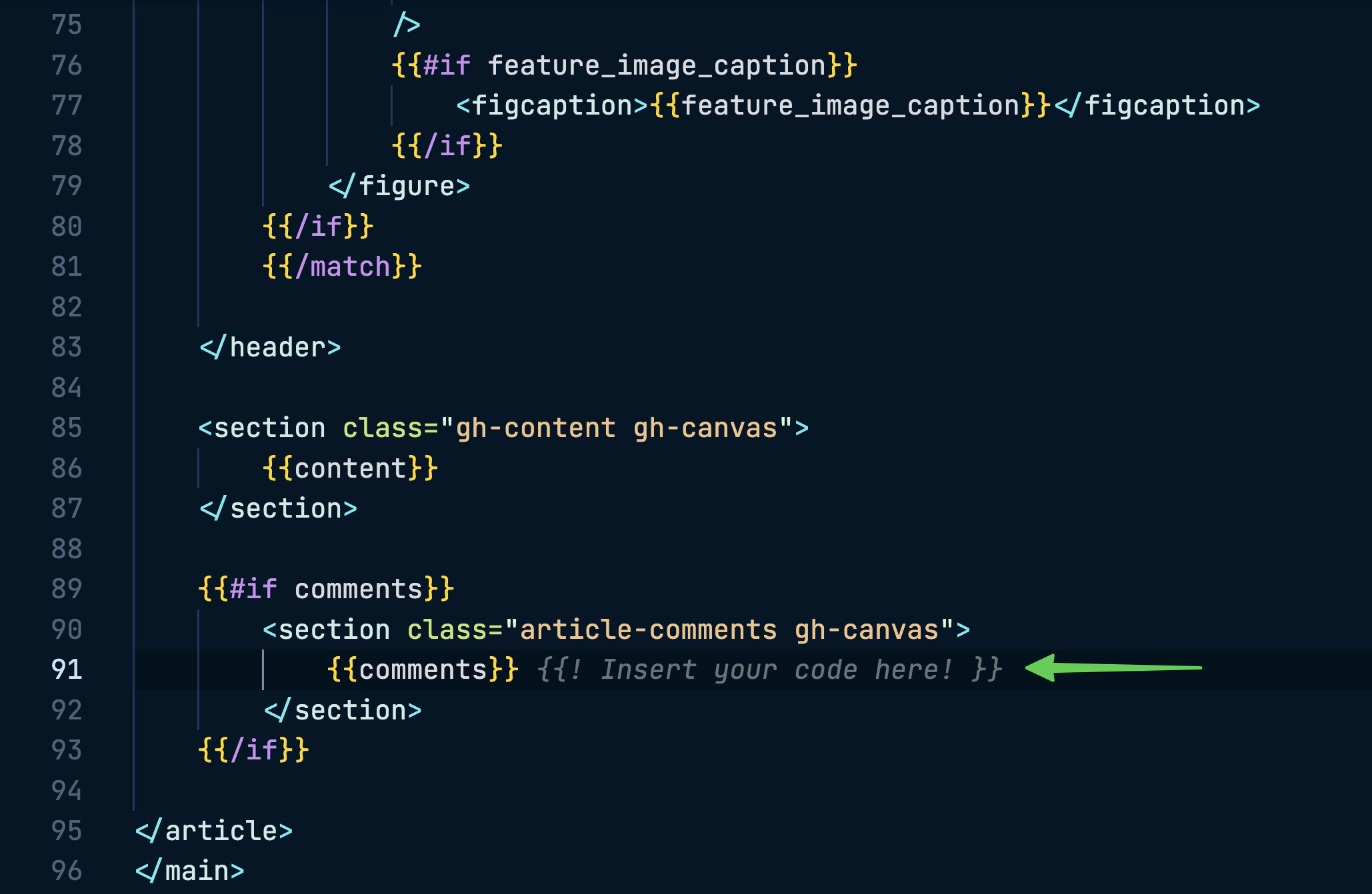 Paste the final comment code into post.hbs